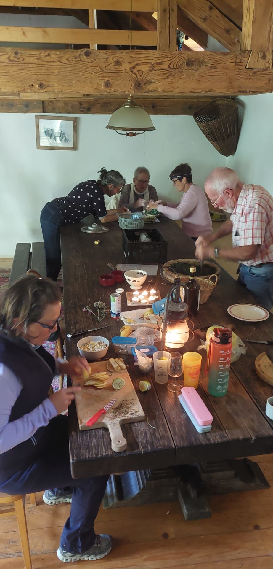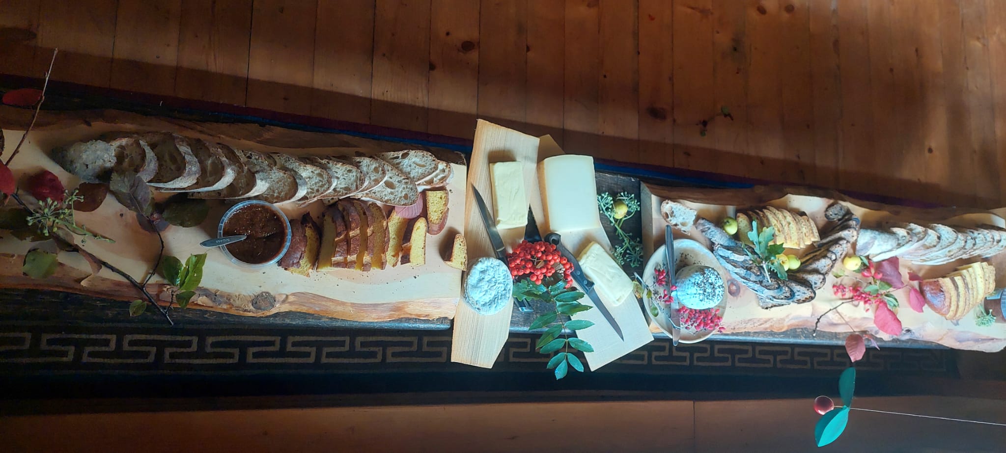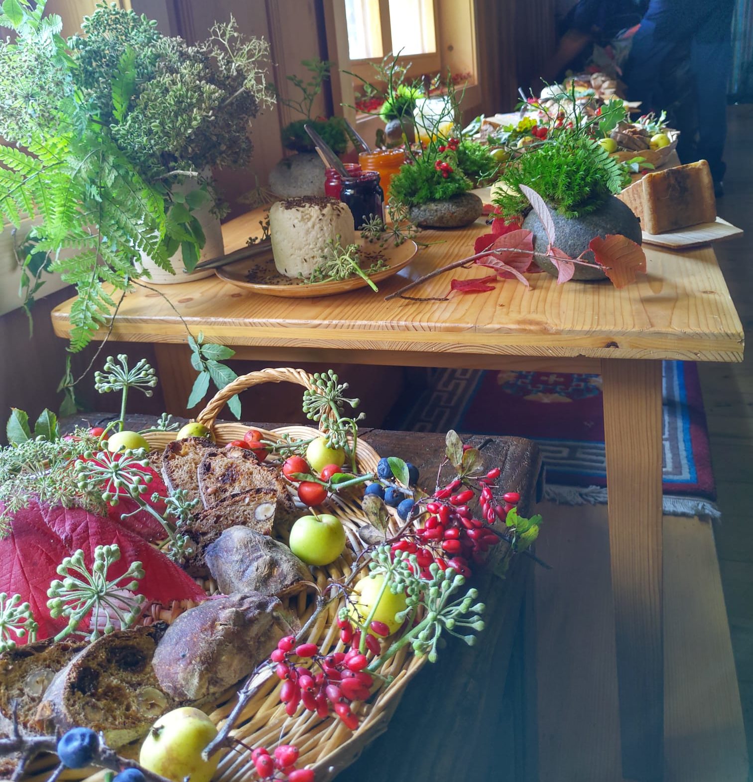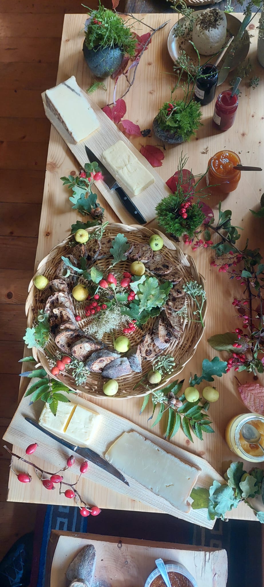 Après avoir récolté tout ce dont nous avions besoin, nous sommes montés dans un chalet d’alpage où nous attendait un superbe et délicieux brunch préparé par Françoise et ses acolytes.