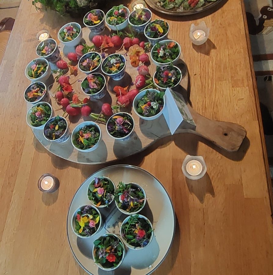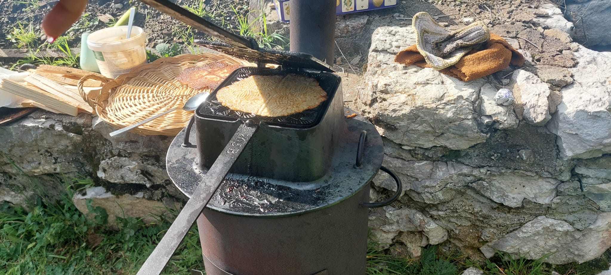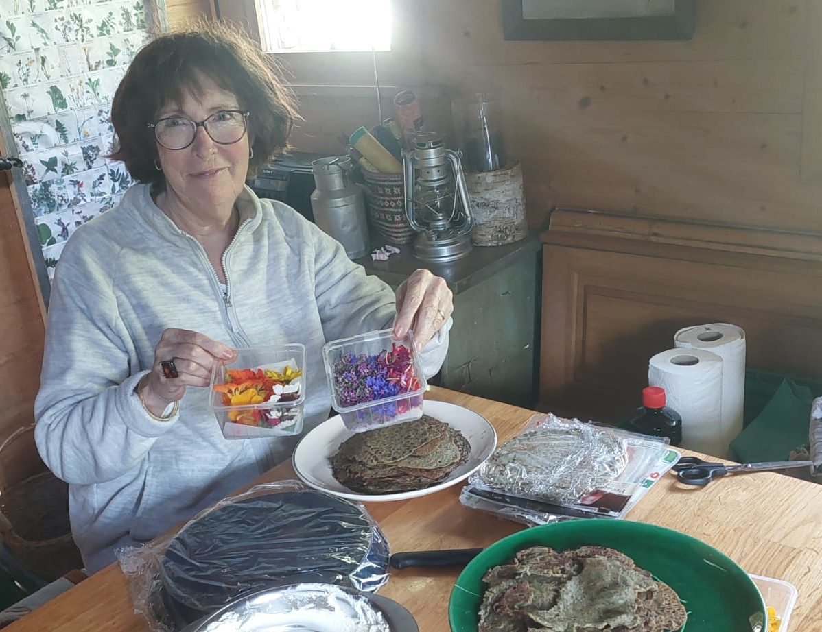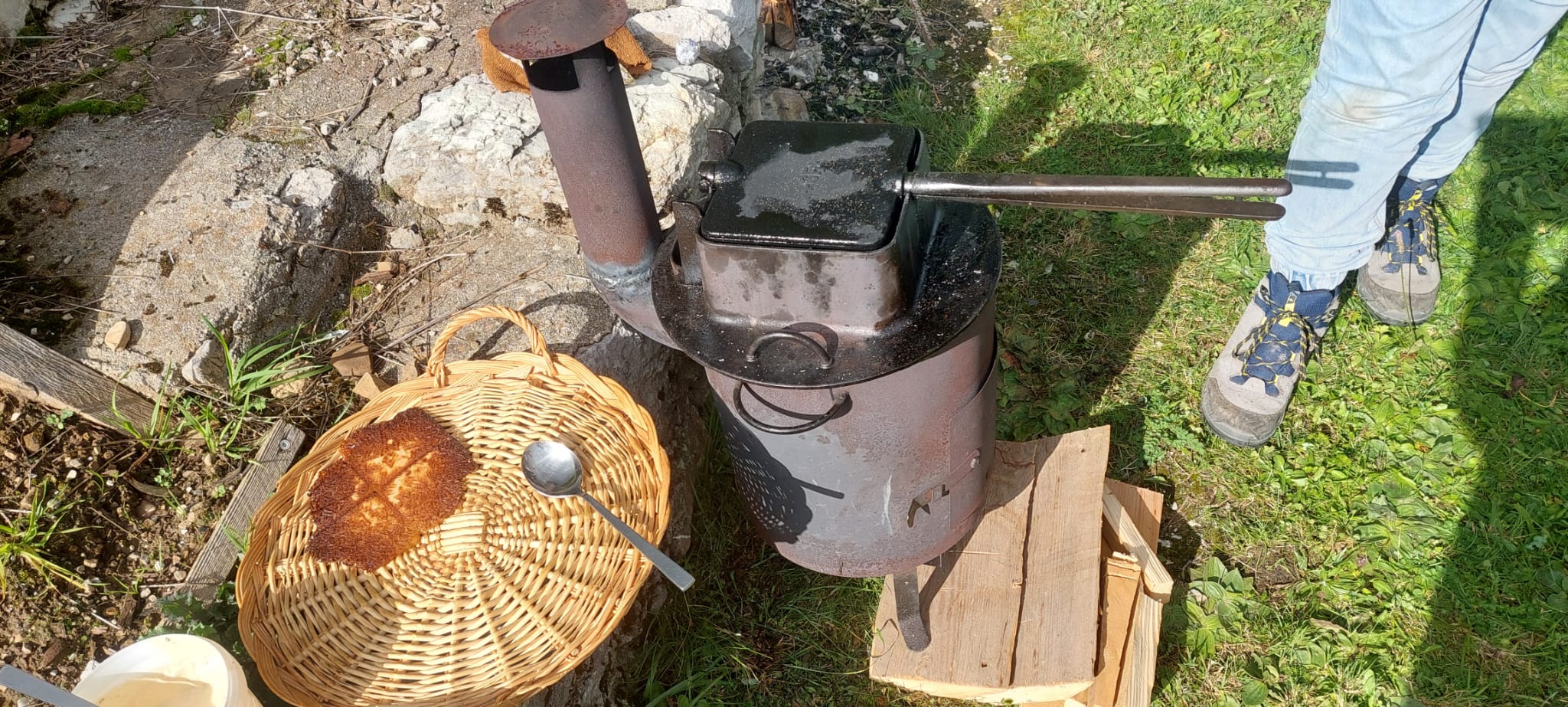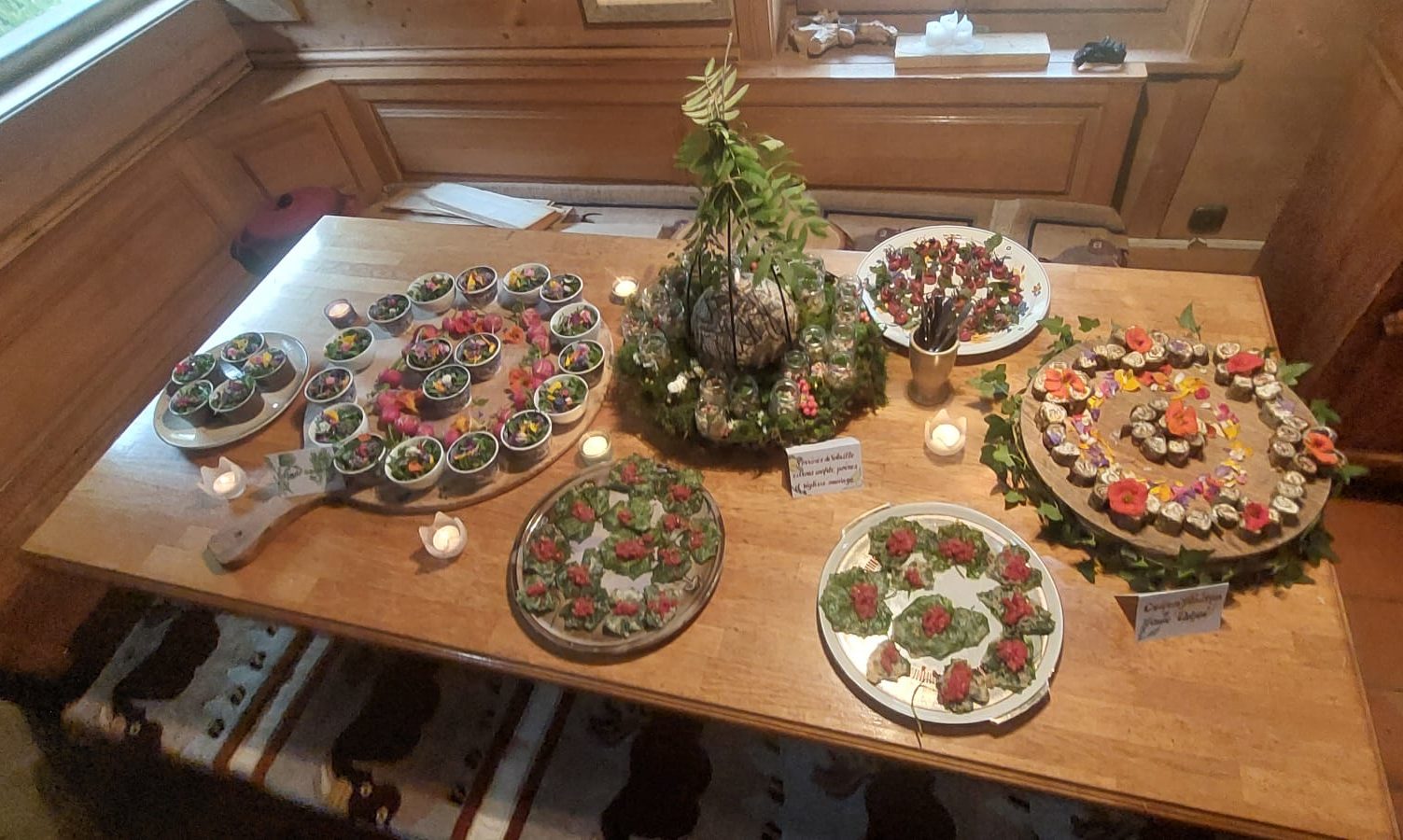 Après avoir récolté tout ce dont nous avions besoin, nous sommes montés dans un chalet d’alpage où nous attendait un superbe et délicieux brunch préparé par Françoise et ses acolytes.