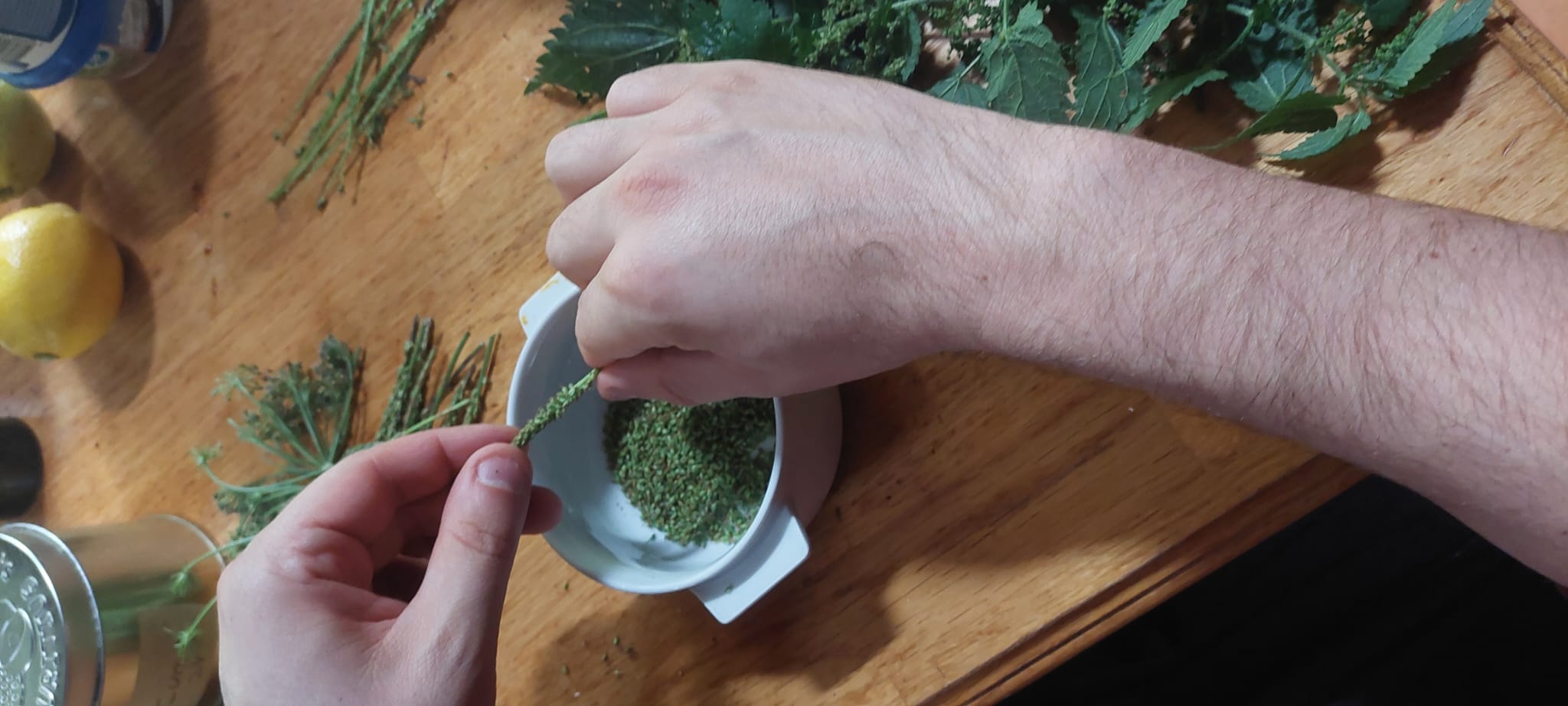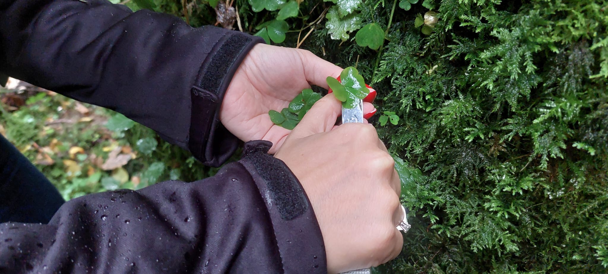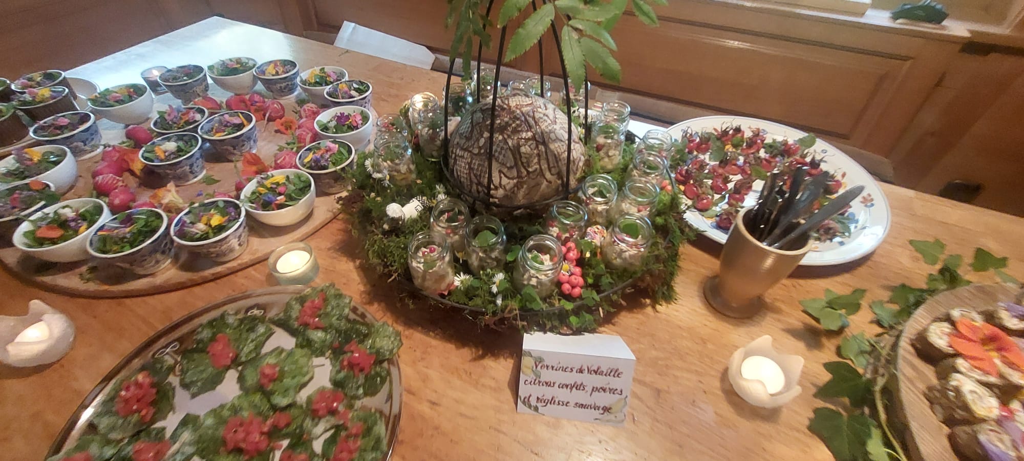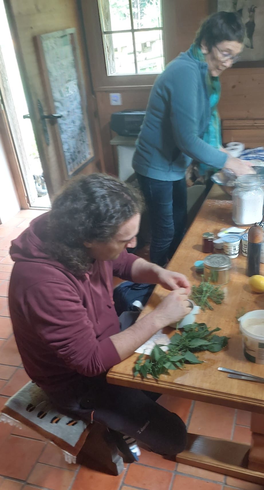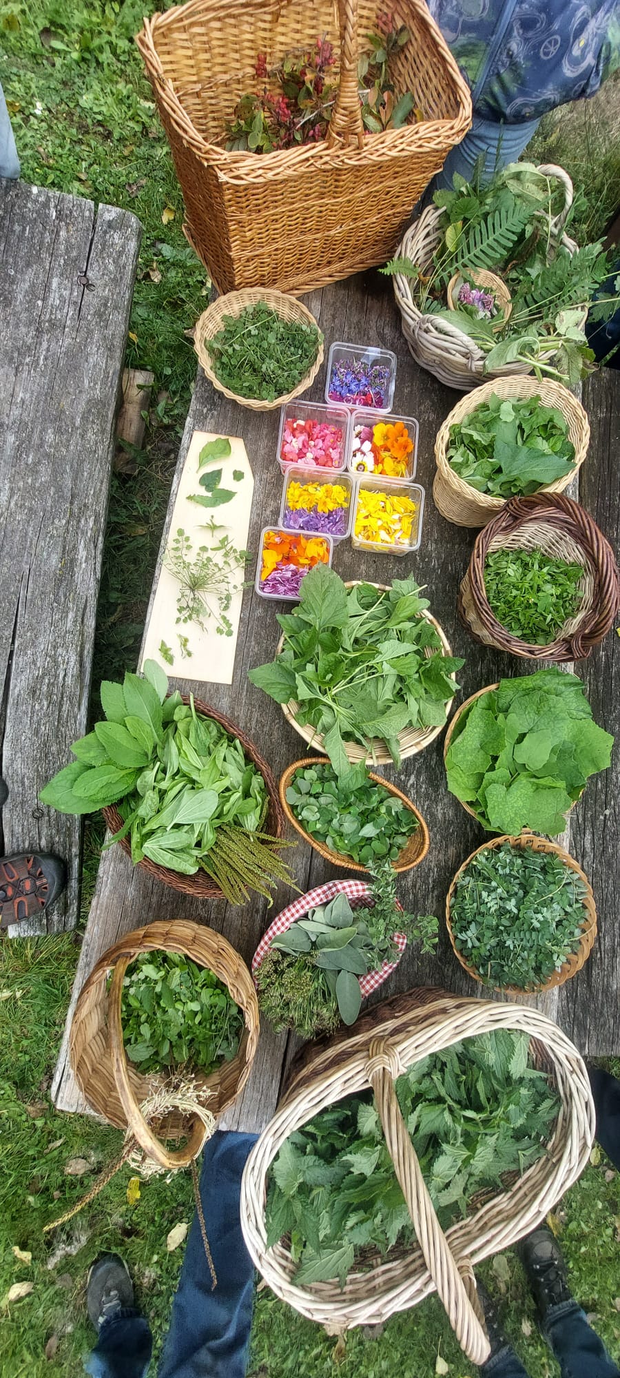 C’est sous la pluie et le soleil dans le cœur, que nous sommes partis dans la forêt et à travers les prés pour écouter attentivement les explications de Françoise nous indiquant comment reconnaitre les différentes plantes et racines, ainsi que les diverses propriétés qu’elles possèdent. Nous nous sommes ensuite mis au travail afin d’en récolter suffisamment pour pouvoir nous concocter un succulent repas.