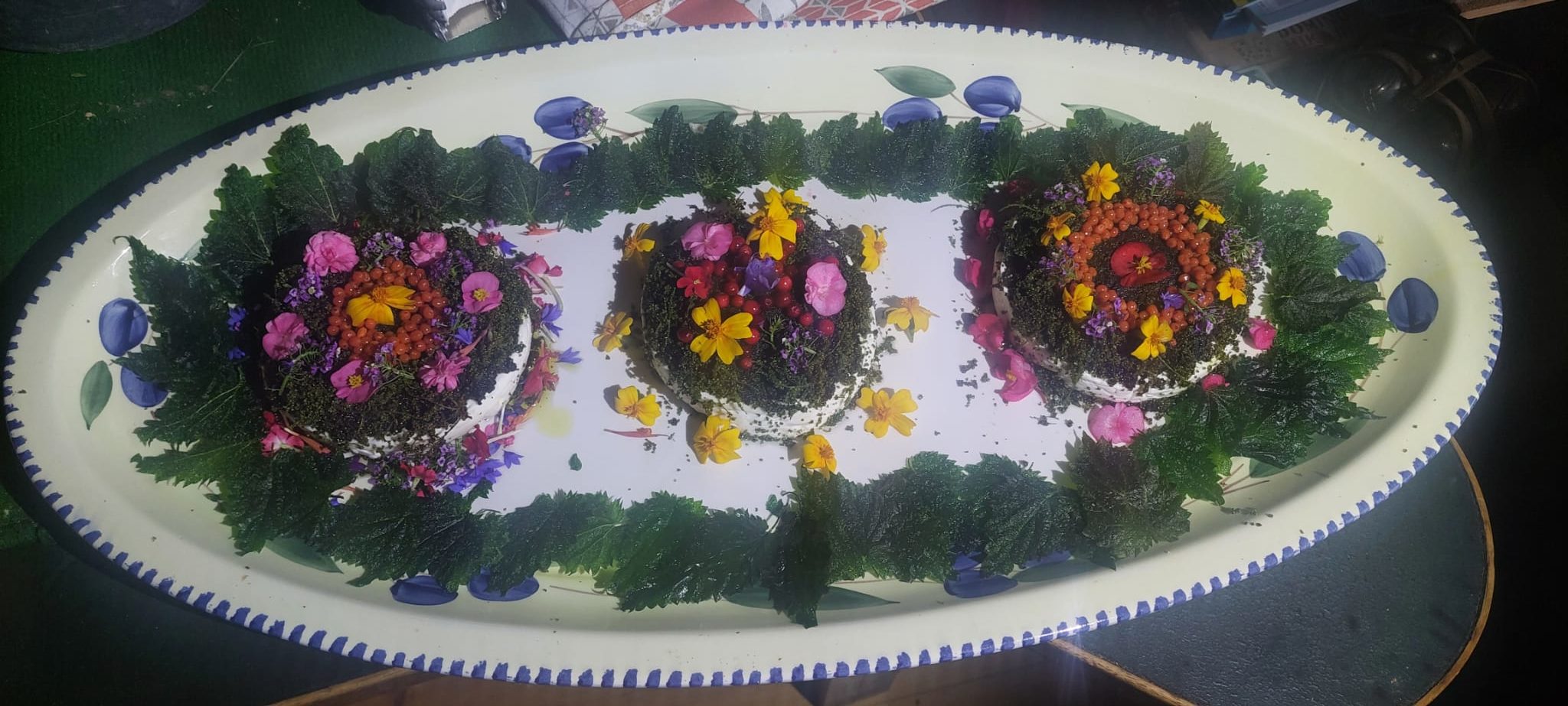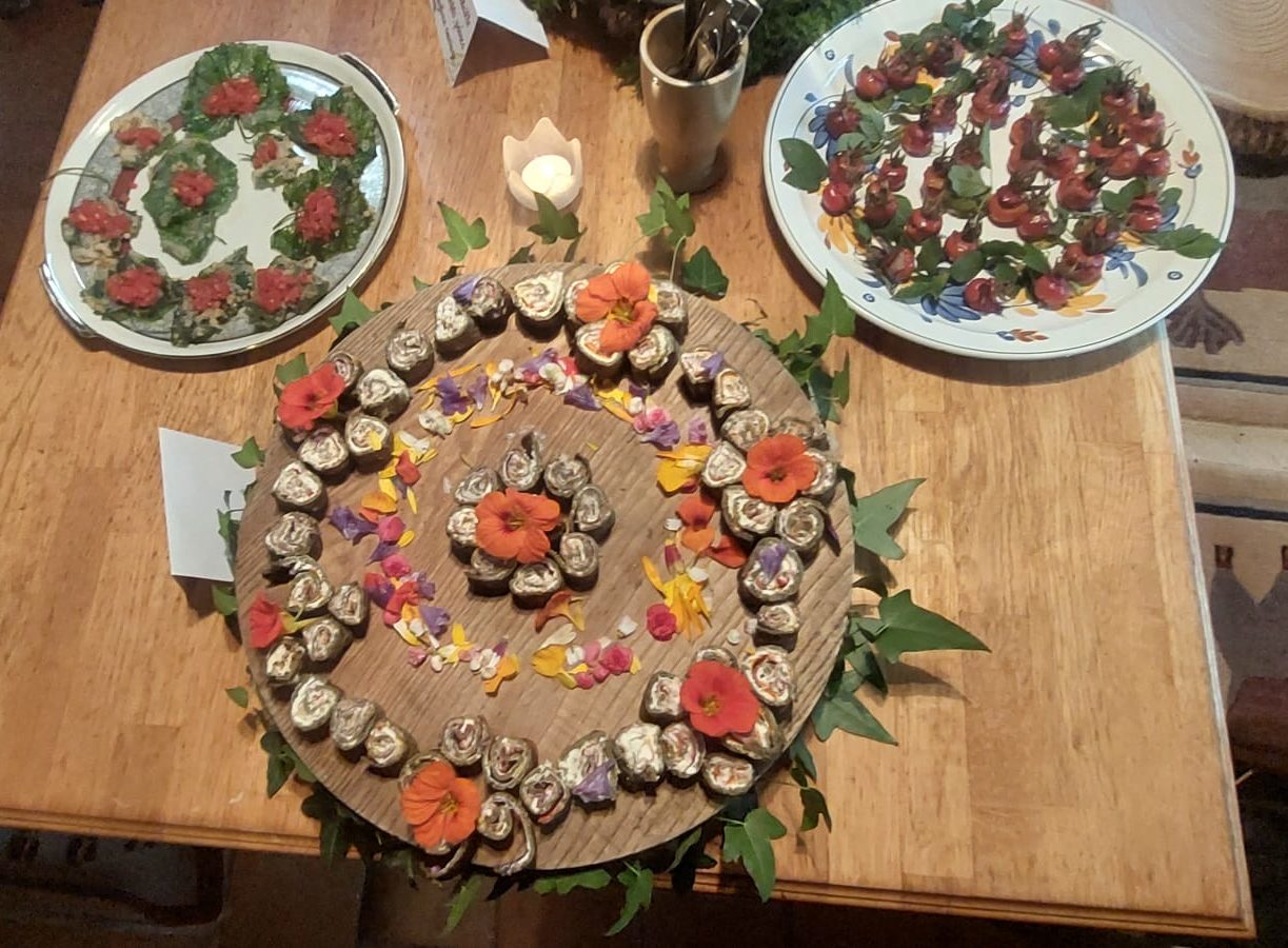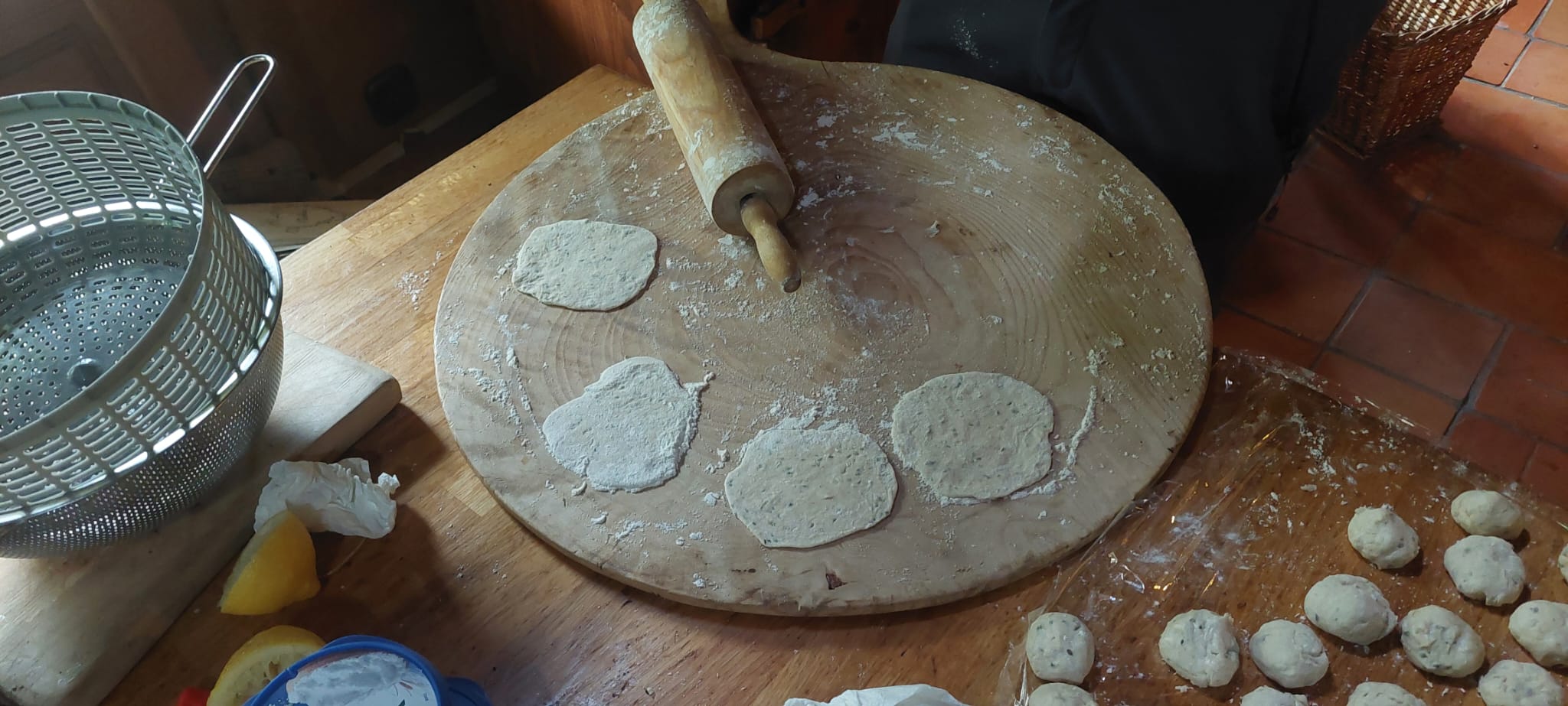 Une fois rassasiés, il est temps de se mettre au travail : répartition des postes, hachage, découpage, pétrissage, écossage, cuisson, roulage, décoration, etc. Tout cela nous met en appétit ! Comme récompense, la nature nous offrira un spectacle aussi magnifique que nos réalisations : deux arcs-en-ciel.