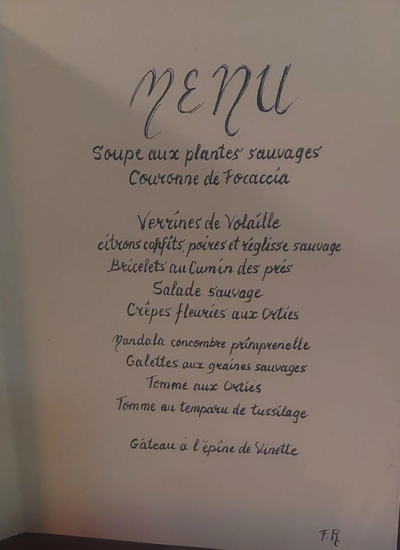 C’est autour d’un menu aussi beau que bon que nous terminons cette journée mémorable, sans oublier de l’agrémenter, bien sûr, de quelques chants.